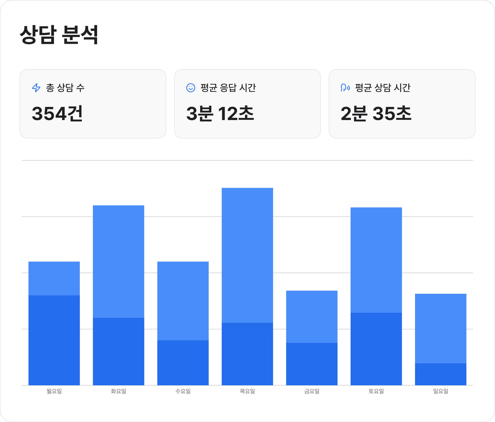 채팅 수, 응답 시간 등 주요 지표를 확인해