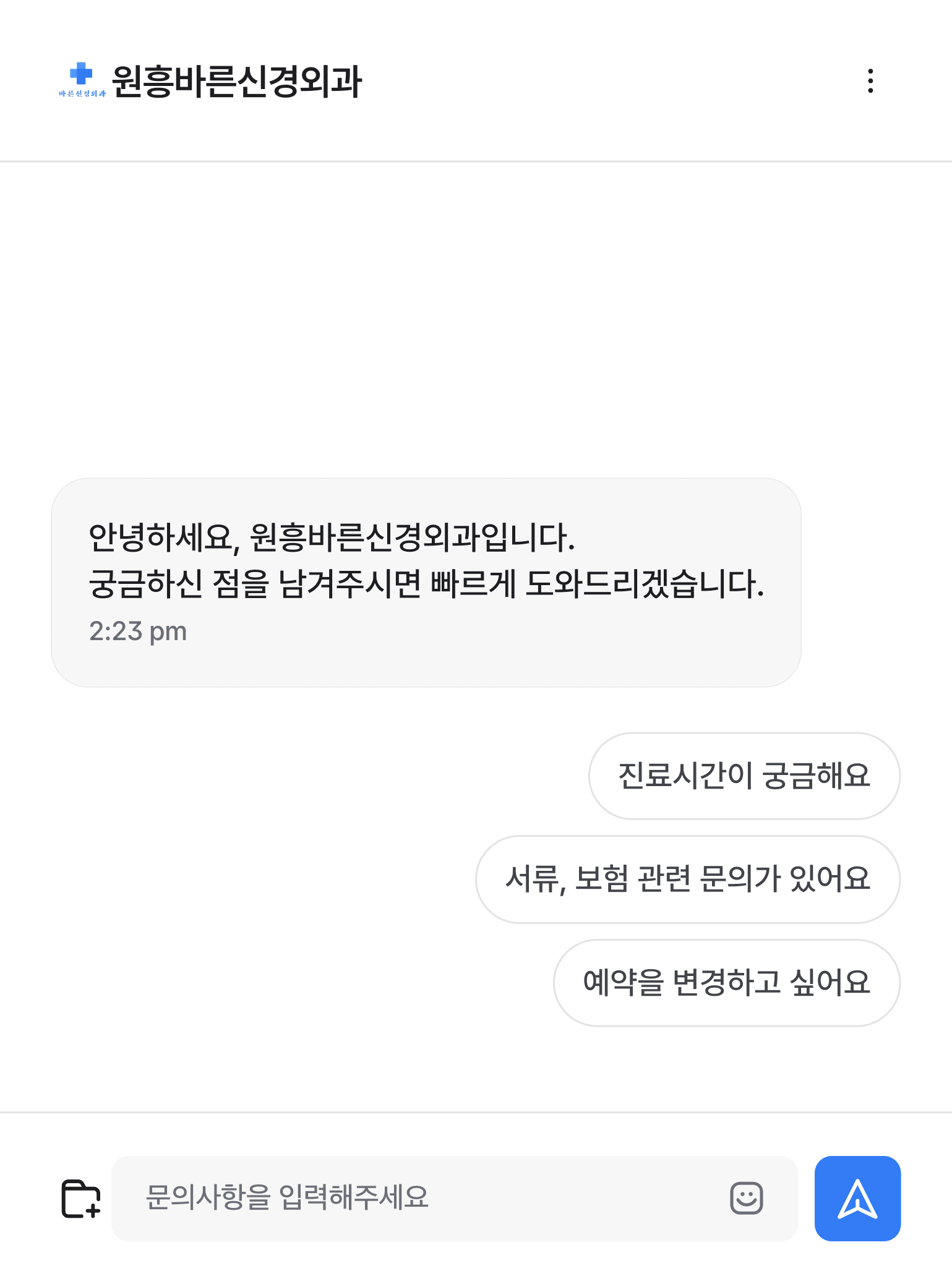 환자가 채팅을 시작하면 환영 메시지가