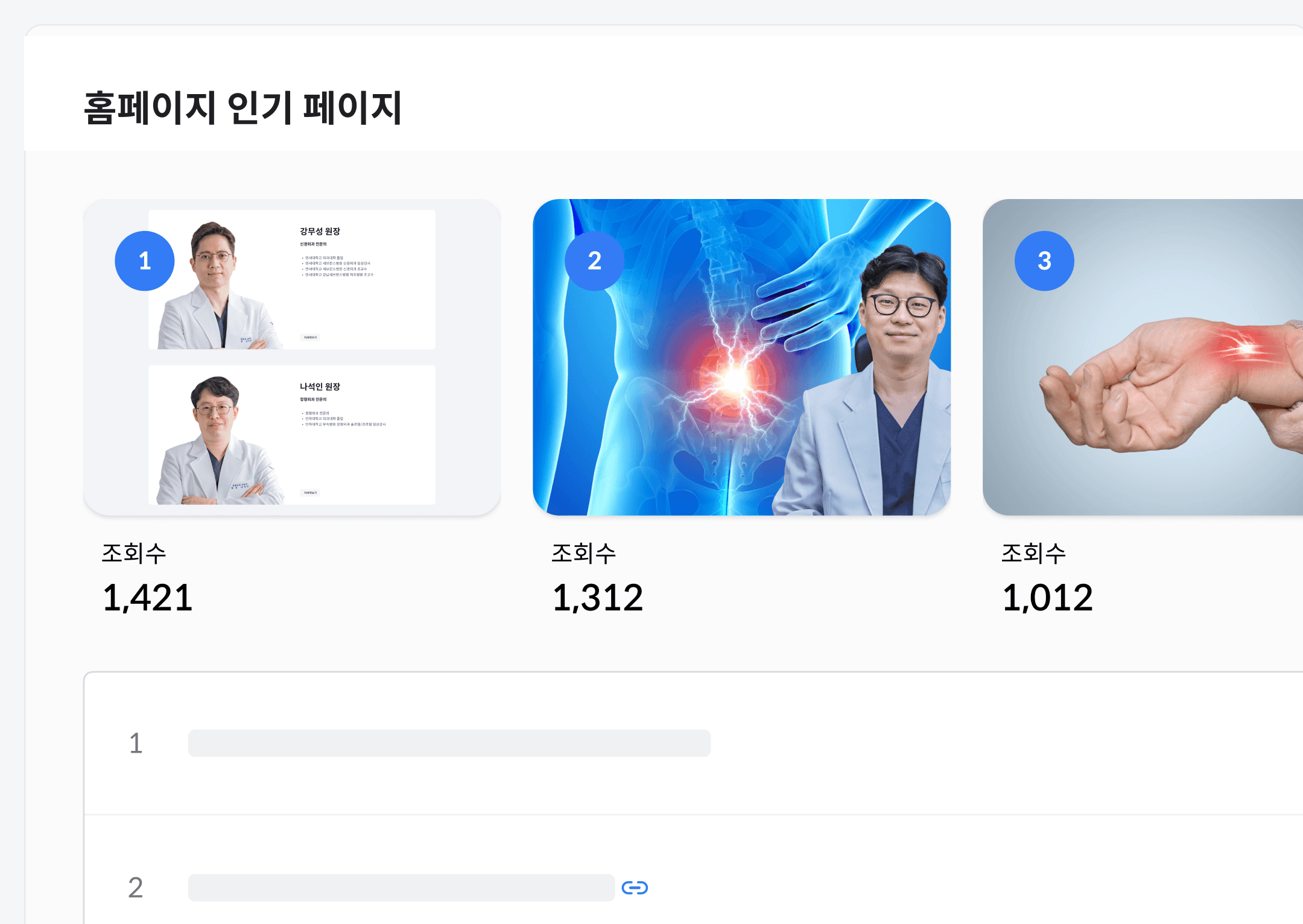 의료진 소개 페이지가 1위라면, 원장님 경력과 전문 분야를