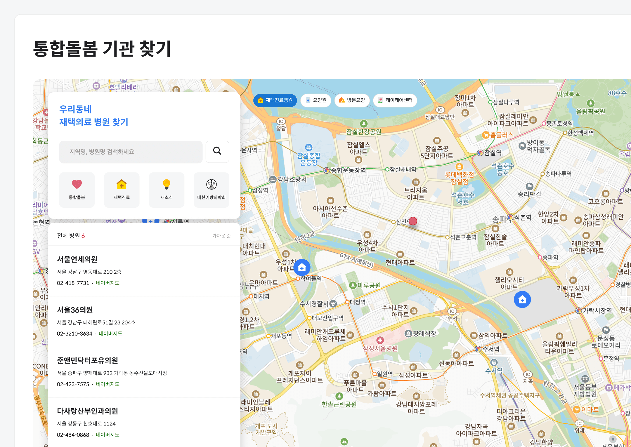 통합돌봄 기관 연계와 재택진료 스케줄을 디지털로 관리합니다.