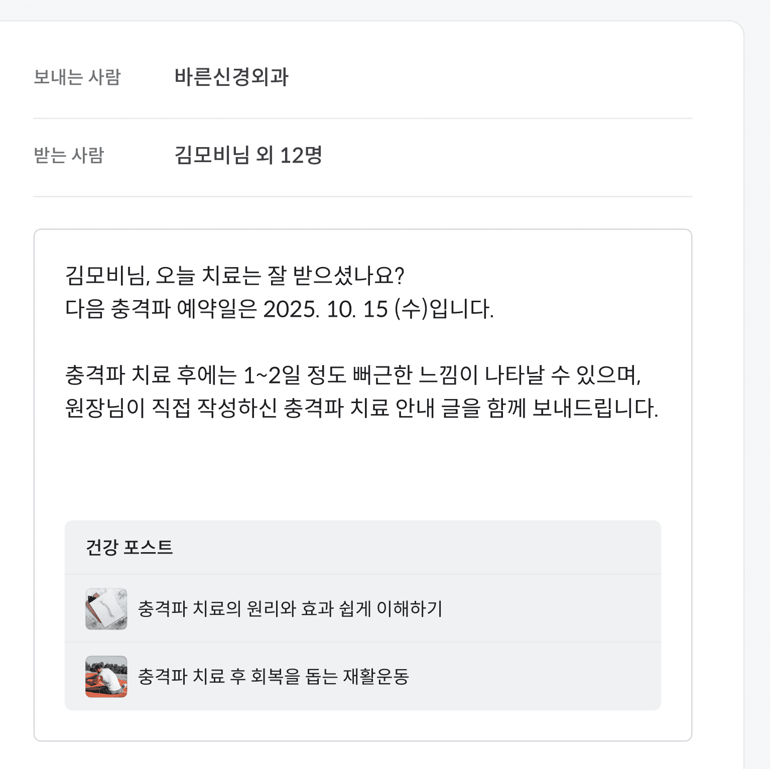 이탈 의심 환자와 해피콜 대상자에게 적절한 시점에 메시지를 발송합니다.